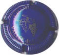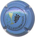 Villedommange | bleu et polychrome (NR) | fond bleu, cercle noir, inscription noire "Villedommange", motif central flute pleine or accompagné d'une branche de vigne verte et d'une grappe de raisins noire |
