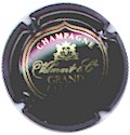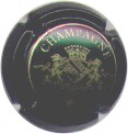 Gilbert Vouillot | noir 187-2-6 /221-2-1 | fond noir, cercle or, inscription or "Gilbert Vouillot - Monthelon - Champagne", blason central or reprenant les armes de Champagne, entouré de 2 lions et surmonté d'une couronne rempart |