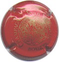 Jean Vesselle | rouge 185-1-3 /218-1-2 | fond rouge, inscription or "Champagne Jean vesselle - Bouzy", cercle or, motif central or représentant un moine au milieu des vignes, avec un ruban portant l'inscription "Champagne Jean Vesselle - Bouzy" |
