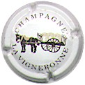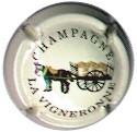 La Vigneronne | blanc 186-1-3 NR /219-1-4 | fond blanc, inscription noire "Champagne La Vigneronne", dessin central noir et or représentant une charrette de raisin tirée par un cheval |