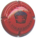 La Vigneronne | rouge, écriture or 186-1-1 /219-1-2 | fond rouge, inscription noire "Champagne La Vigneronne", motif central représentant un panier de raisins |