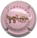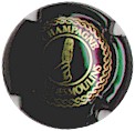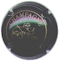 La Vigneronne | or et noir-champagne 185-2-5 /218-2-6 | fond or, cercle noir avec 2 fois l'inscription "Champagne", grande grappe de raisin avec feuille noire |