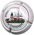 Villers-Sous-Châtillon | blanc, bleu et jaune 186-2-2 /219-2-3 | fond blanc, cercle bleu, inscription bleue "Champagne Villiers-sous-Châtillon", dessin central bleu et jaune représentant le village et son église, bulles jaunes dans le ciel |