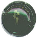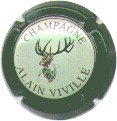 Alain Viville | contour vert foncé NR / 220-2-5 | contour vert foncé, centre blanc verdâtre, cercle noir, inscription noire "Champagne Alain Viville", motif central brun et noir représentant le torse d'un cerf |