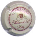 Vilmart & Cie | crème et bordeaux 186-2-5 /220-1-2 | fond crème, double cercle bordeaux, inscription bordeaux "Champagne - Vilmart & Cie - Rilly", blason centre haut or et rouge contenant un "V" traversé par une comète de Halley or sur fond rouge, entouré de 2 lions et surmonté d'une couronne |