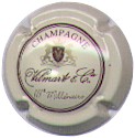 Vilmart & Cie | crème et marron An2000 NR /220-1-2 | fond crème, double cercle marron, inscription marron "Champagne - Vilmart & Cie - IIIè Millénaire", blason centre haut or et marron contenant un "V" traversé par une comète de Halley or sur fond marron, entouré de 2 lions et surmonté d'une couronne |