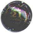 Vranken | cuvée 21 188-1-5 /222-1-1 | fond bleu métallisé, cercle or, inscription "Vranken - Vranken", inscription centrale manuscrite or "Cuvée 21 Twenty One" |