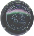 Vrigny | bleu-noir insc or 188-2-1 /222-1-4 | fond bleu-noir, cercle or, inscription or "Champagne Vrigny", motif central représentant une église |